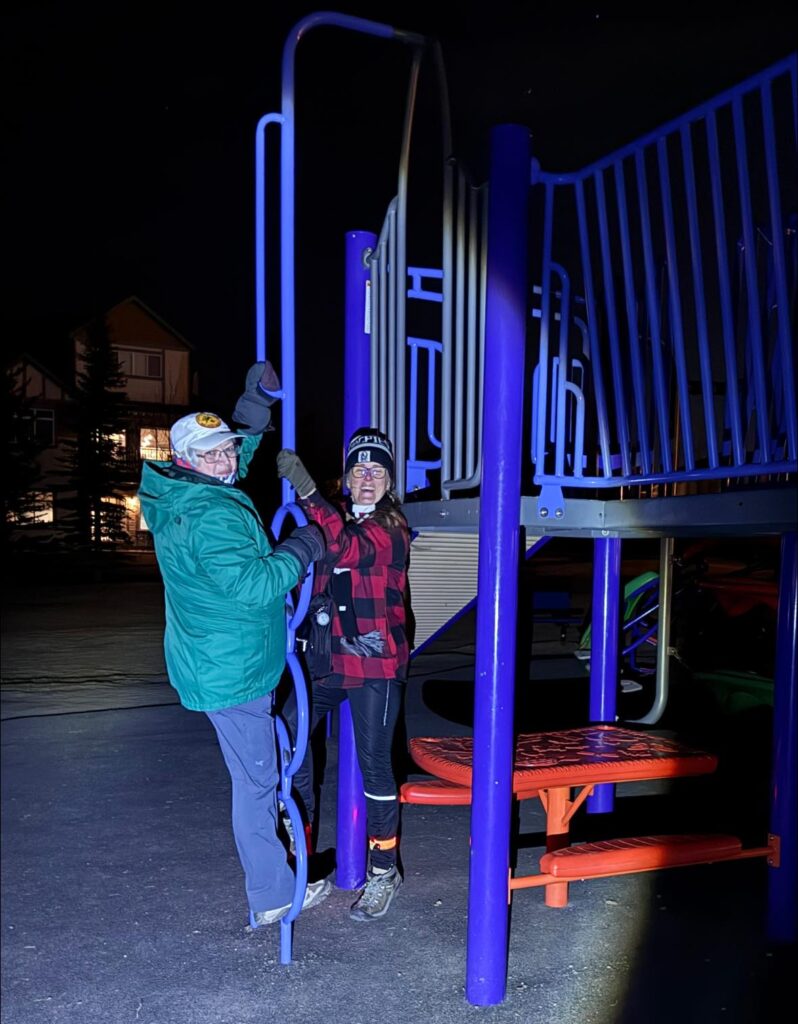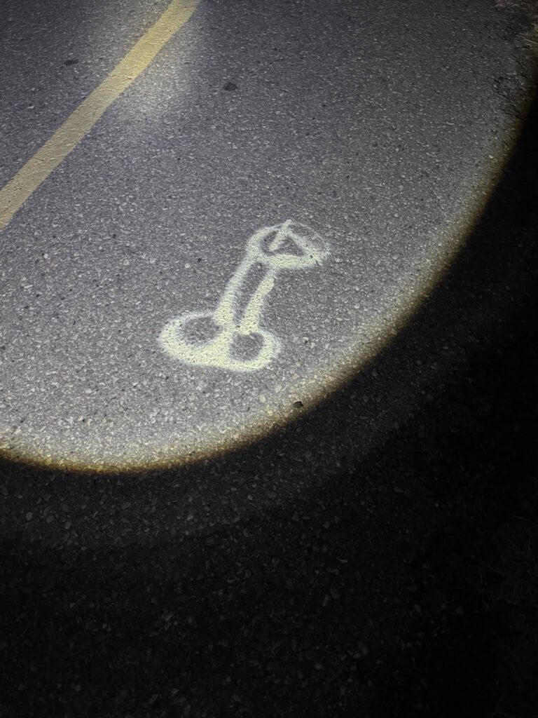 Off through the parking lot to find the first marks. There were pathways in the dark where marks could be found.